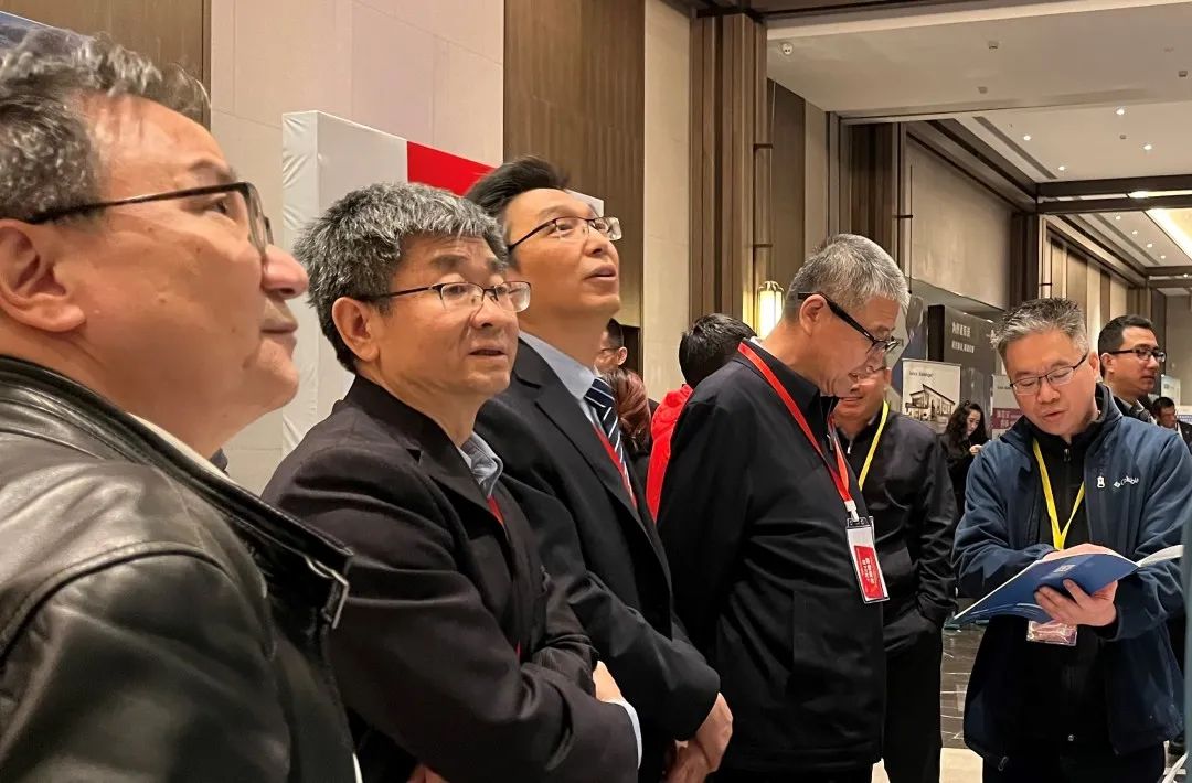 中國(guó)建筑科學(xué)研究院專業(yè)總工、全國(guó)工程勘察設(shè)計(jì)大師、中國(guó)建筑科學(xué)研究院環(huán)能院院長(zhǎng)徐偉(左三),中國(guó)工程院院士江億(左四)到艾科展臺(tái)交流